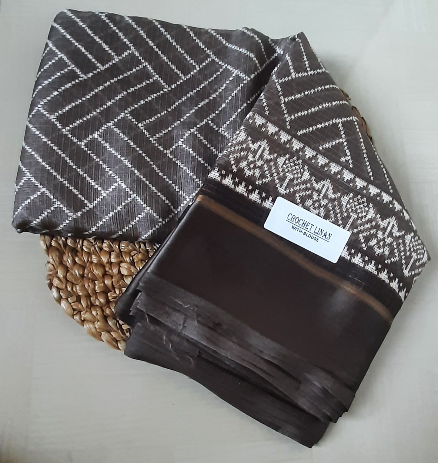 Experience a seamless fusion of traditional luxury and modern comfort with our Crochet Linen Saree. Crafted from high-quality linen, this saree offers supreme breathability and is perfect for year-round use. The intricate crochet detailing adds a touch of sophistication, effortlessly elevating both casual and formal outfits. Each piece is meticulously handcrafted, showcasing the exceptional skill of Indian artisans and infusing the timeless linen fabric with a touch of finesse. Soft and durable, this saree guarantees maximum comfort and a graceful drape. Whether you're attending a daytime event, a casual outing, or a formal affair, the Crochet Linen Saree exudes timeless allure and understated elegance. Embrace sustainability and enhance your wardrobe with this stunning addition to any collection.
